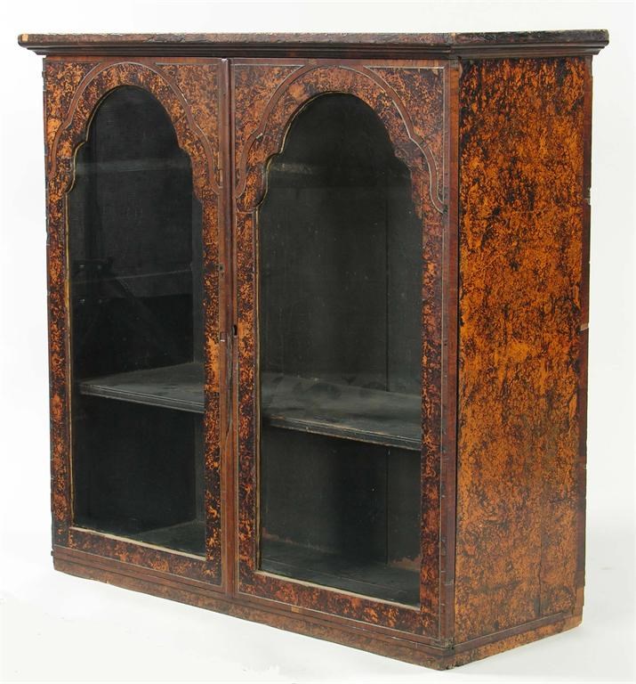 A stained burr maple, white metal strung and rosewood banded cabinet top, the moulded cornice above a single shelf, enclosed by a pair of later glazed arch doors, 37.25in (94.5cm)h, 37.75in (96cm)w, 14.75in (37.5cm) d.