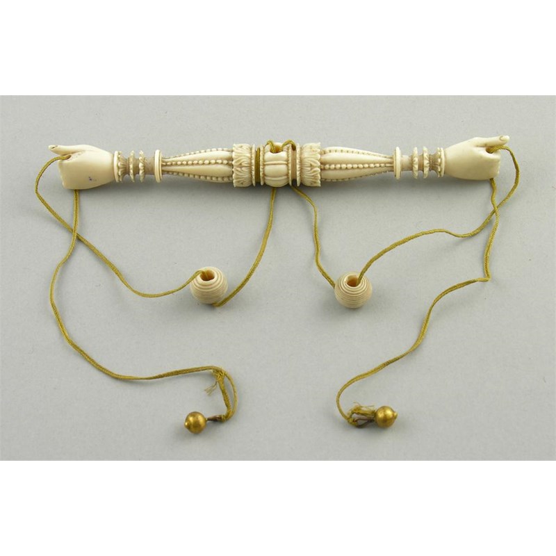 A 19th century carved ivory hands and balls puzzle
