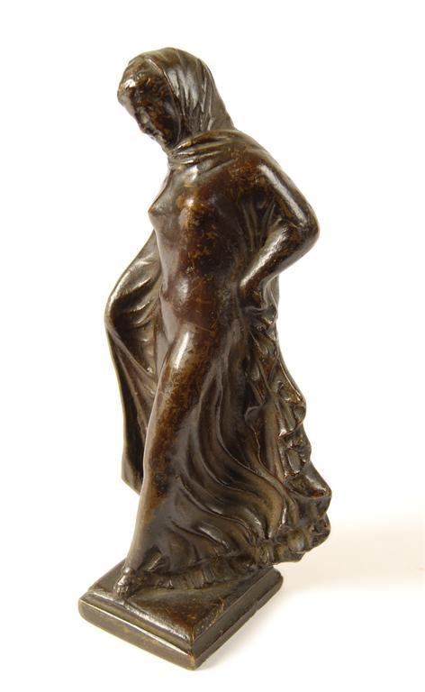 A bronze figure of Dionysius, wearing a transparent robe, raised on a rectangular base, 19th century, 8in (20cm) h.