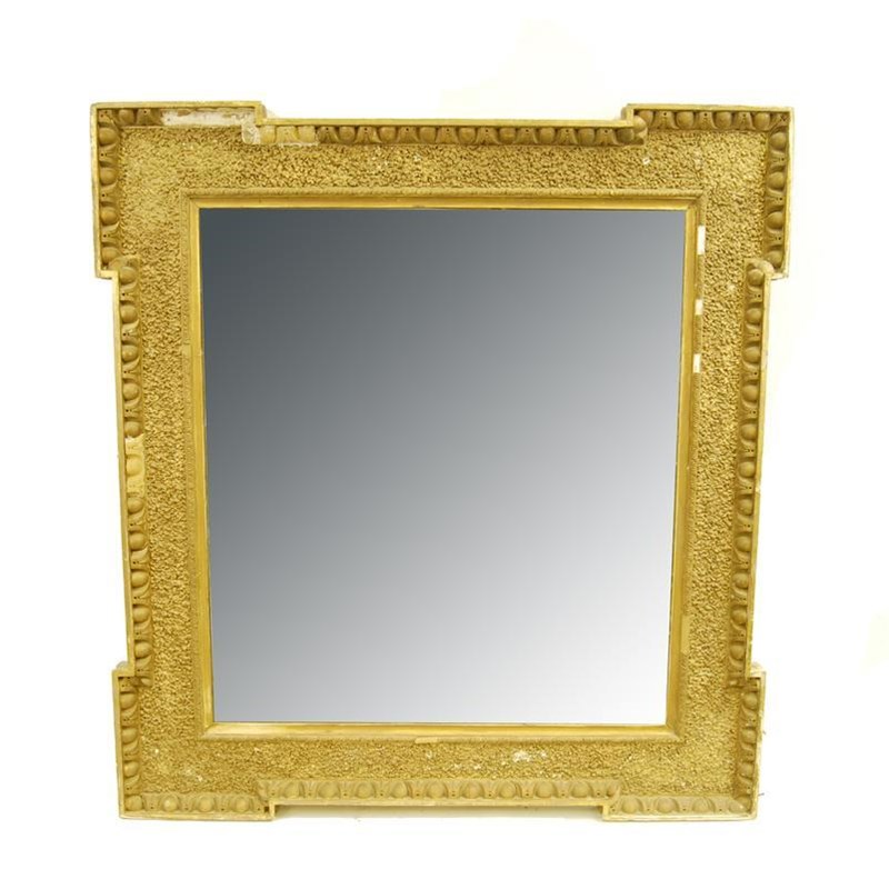 A large wall mirror in Palladian style, the rectangular plate to a rusticated frame and an egg and dart border, 63.25 x 58.75in (160.4 x 148.8cm). Losses and replacements.