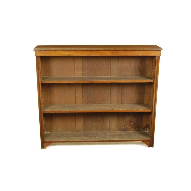 A late Victorian walnut open bookcase, with two adjustable shelves, 41in (104cm) h, 47.75in (121cm) w, 10.25in (26cm) d.