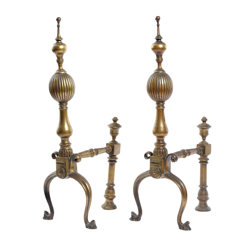 each with a turned finial above a reeded orb, baluster stem and scrolling front legs (2)