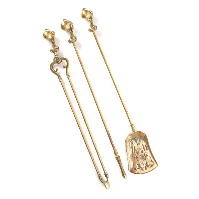 A SET OF THREE VICTORIAN BRASS FIRE TOOLS