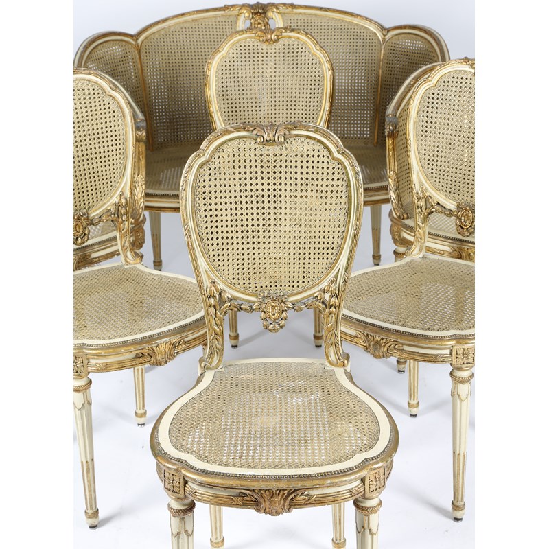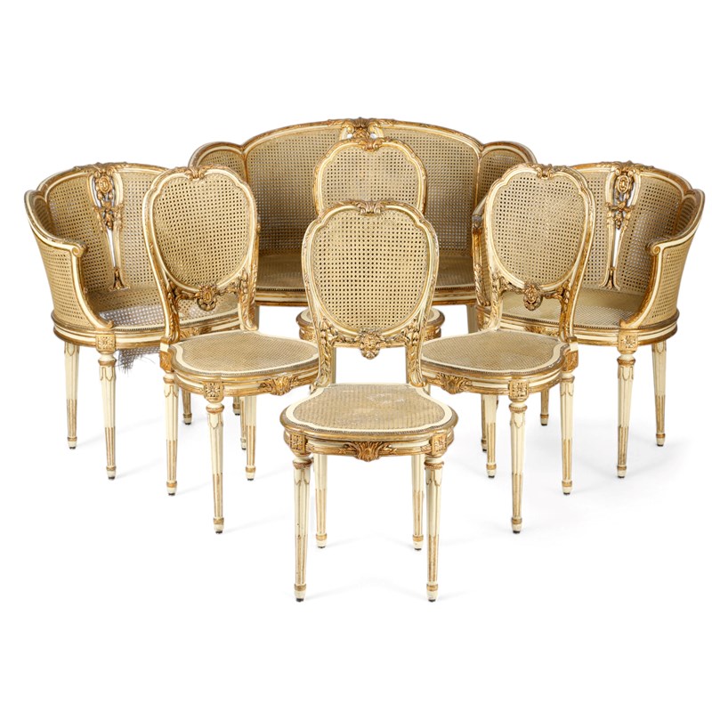 A FRENCH PAINTED AND GILTWOOD SALON SUITE