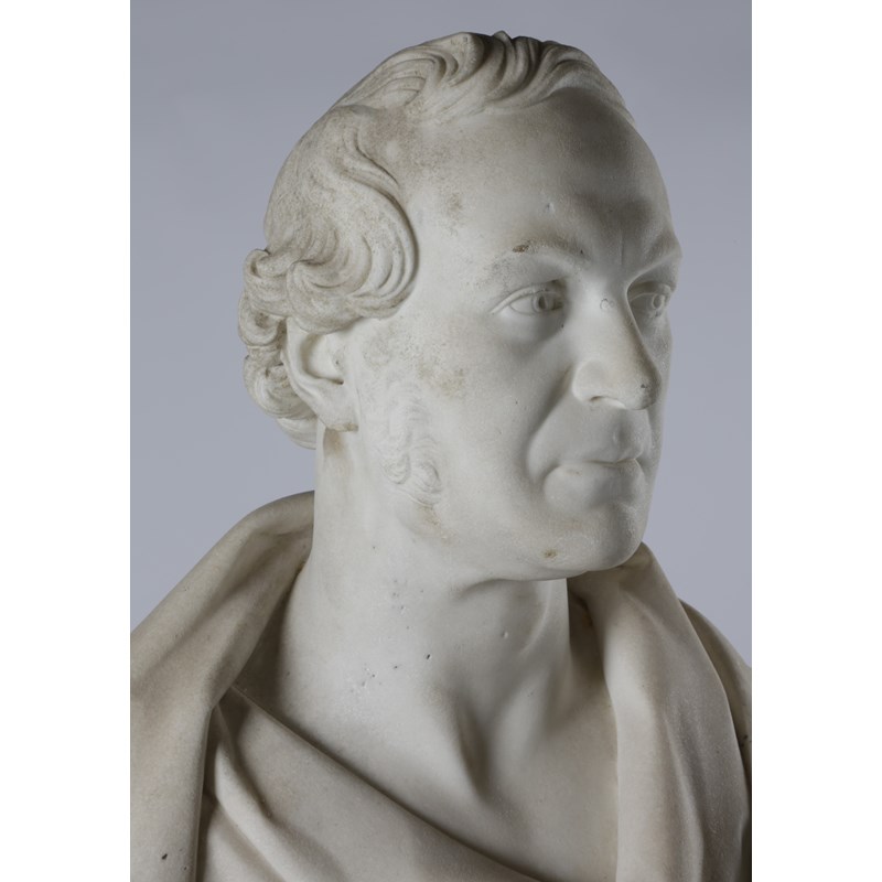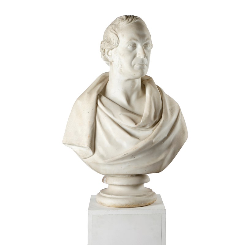 William Calder Marshall (1813-1894) was born in Edinburgh and by 1834 has moved to London where he studied under Edward Hodges Baily and Sir Francis Chantrey. As was normal, he then spent a few years honing his skills in Rome before returning to London where, in 1844 he was elected to the Royal Academy. He became a full member of the Academy in 1852 after he had a marble sculpture of Sabrina, goddess of the River Severn, exhibited at the Great Exhibition in 1851 - a photograph of which is held by the Royal Collections Trust, RCIN 28001155.