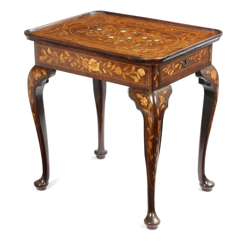 λ A DUTCH WALNUT AND MARQUETRY SILVER TABLE