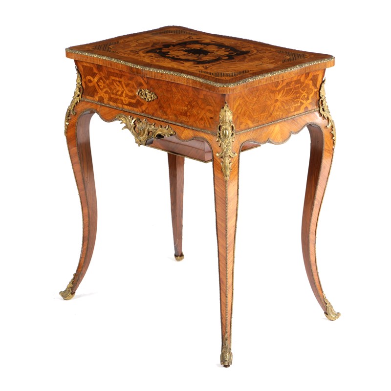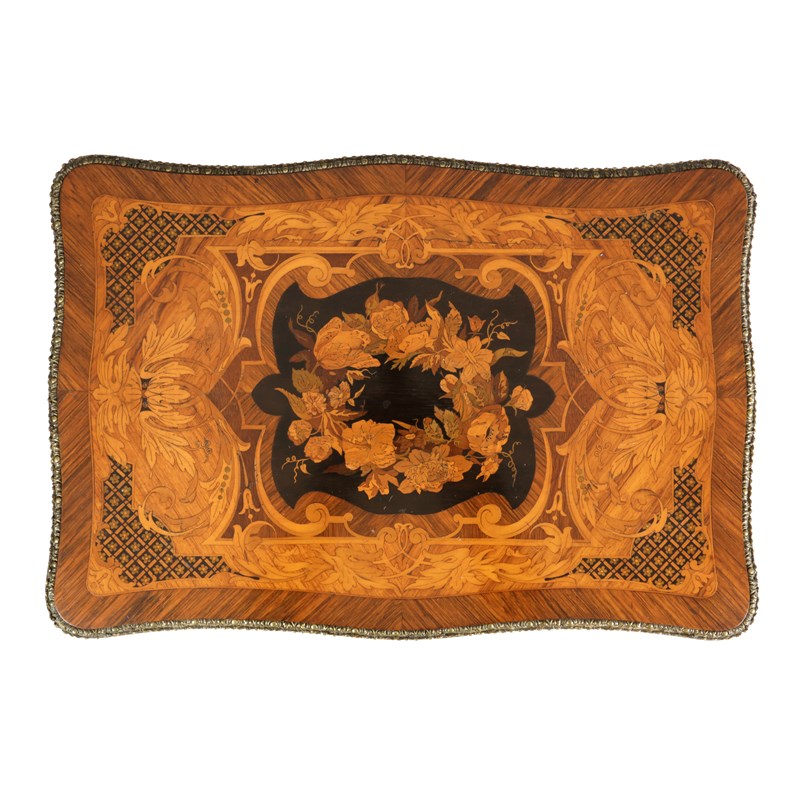 A FRENCH KINGWOOD AND MARQUETRY TABLE A OUVRAGE
