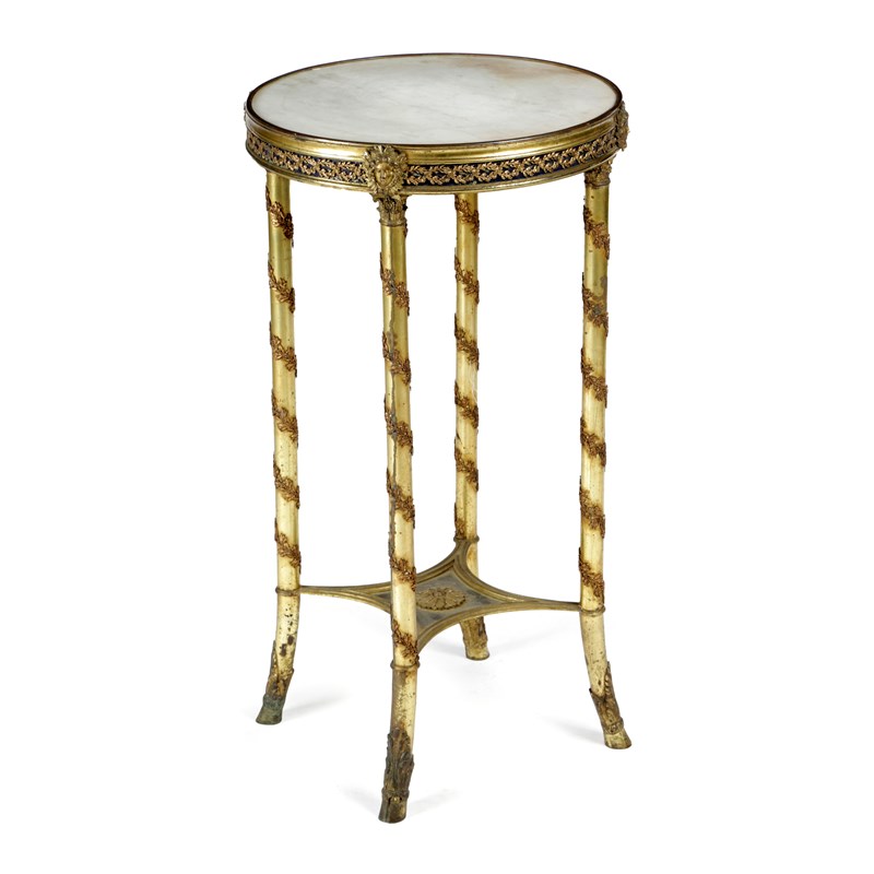 A FRENCH EMPIRE BRASS AND WHITE MARBLE GUERIDON