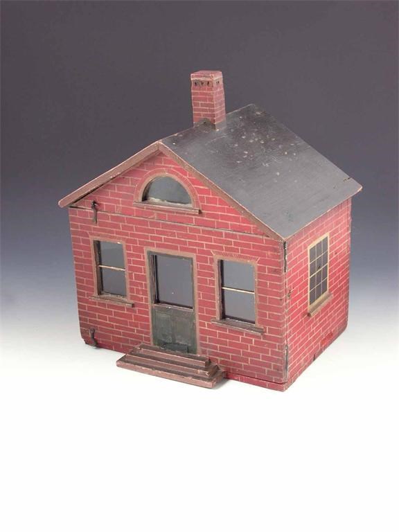 A painted wood doll's house