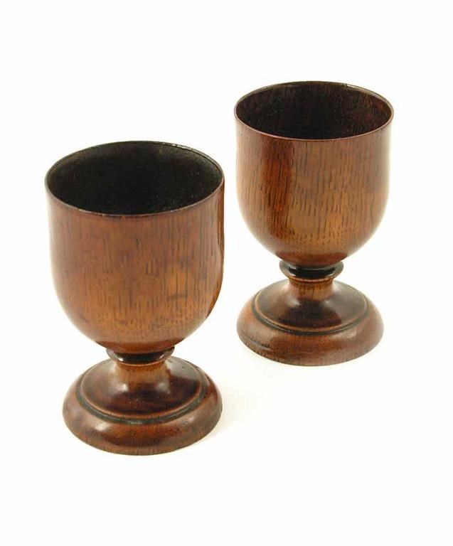 A pair of early 19th century turned oak egg cups, raised on a spreading foot with waisted stem, 2.75in (7cm) h. (2)