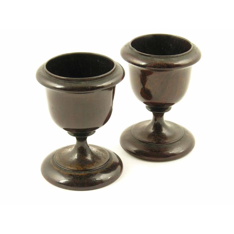 A pair of early 19th century turned rosewood egg cups, on a spreading stem and foot, 3in (7.5cm) h. (2)