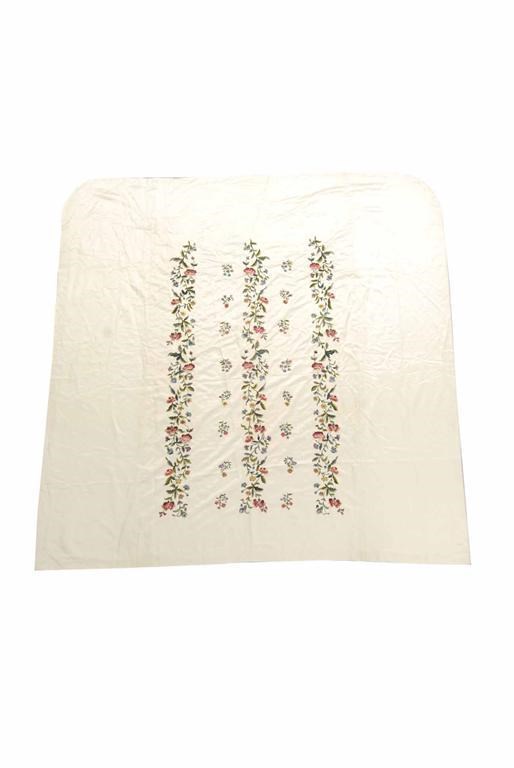 A crewel work and silk bedspread, modern, 92 x 91in, (233 x 213cm).