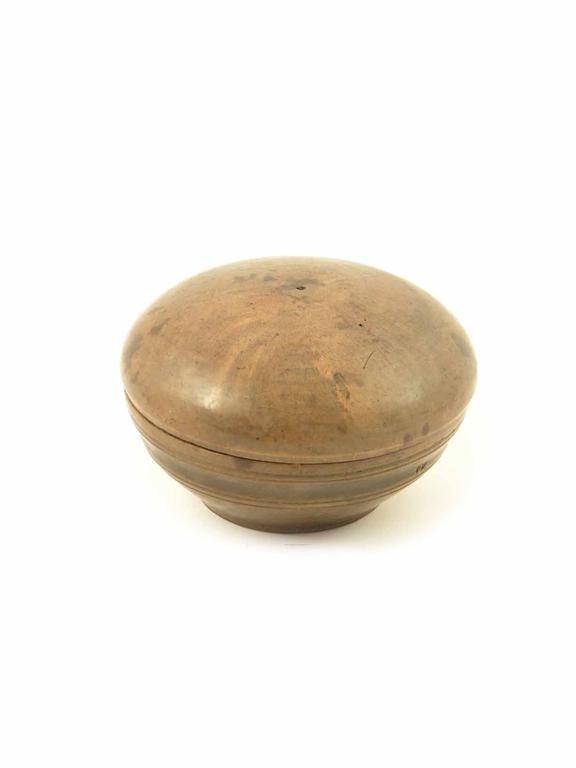 An 18th century Welsh turned sycamore butter bowl or mealey beg, with a moulded band and a domed cover, 2.25in (5.6cm) h, 4in (10cm) dia.