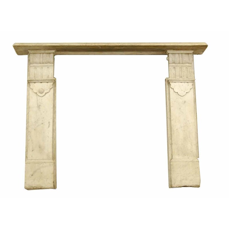A Victorian carrara marble fire surround, the moulded edge mantel above a pair of corbels and column supports, 44.25 x 66in (122.3 x 167.7cm) max. In need of restoration.