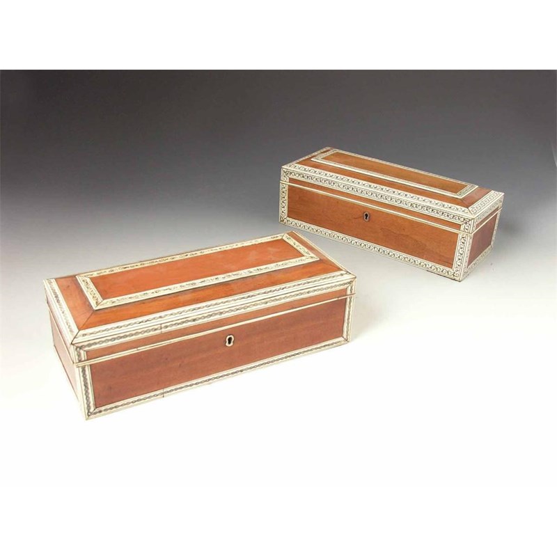 Two similar Anglo-Indian ivory mounted boxes, Vizagapatam, late 19th / early 20th century, 3.5in (9cm) h, 10.25in (25.6cm) w, 4.5in '(11cm) d, max. (2)