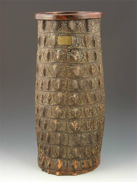 A big game trophy crocodile stickstand, with a plass plaque inscribed 'BADAGARA RIVER, S.INDIA, 1936',19in (48cm) h.
