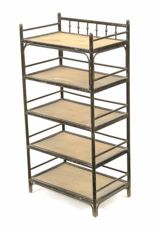 A Victorian ebonised five tier etagere, 36.5in (92.9cm) h, 18.5in (46.9cm) w, 12in (30.5cm) d.