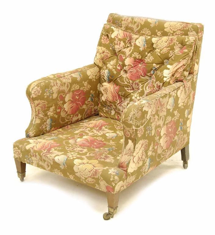 An Edwardian mahogany armchair, on square tapering legs and brass castors.