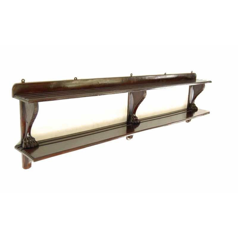 A mahogany two tier wall shelf
