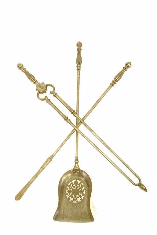 A set of William IV steel fire irons, with ribbed baluster handles and faceted knops, the shovel with a pierced bowl. (3)