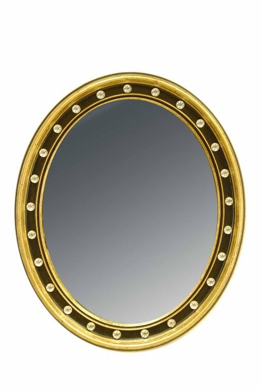 An Irish style wall mirror, the oval plate to a cabochon decorated moulded frame, 23.5 x 19.25in (60 x 49cm).