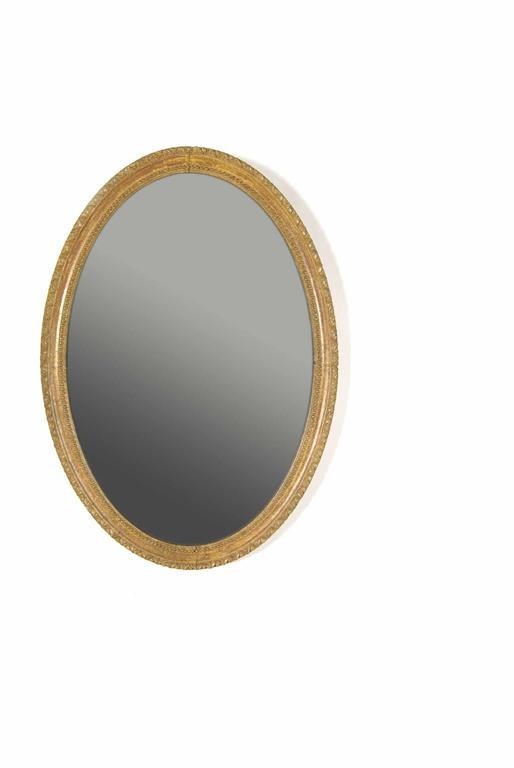 A giltwood wall mirror, the oval plate to a beaded and leaf carved frame, 26.5 x 18.5in (67 x 46.7cm).