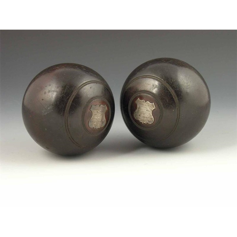 A pair of Scottish turned lignum vitae bowls, each with an inset silver plaque inscribed 'PRIZE BOWLS, ALLOA PUBLIC PARK Gained By JOHN MORISON 1ST JULY 1863'. (2)