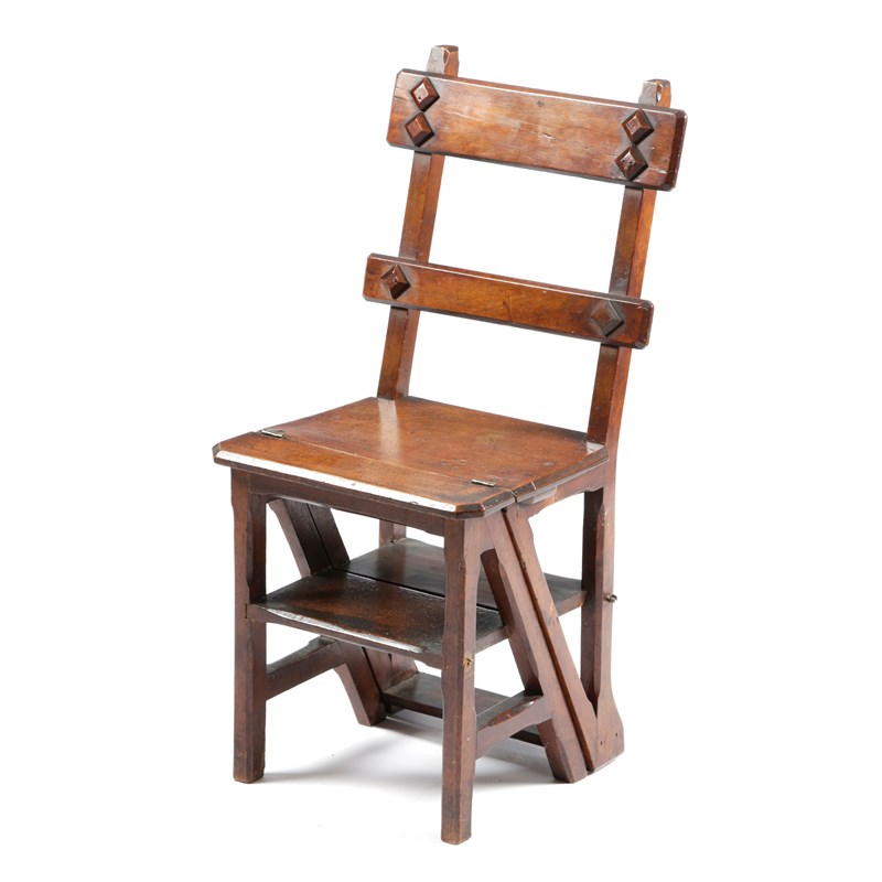 A VICTORIAN WALNUT METAMORPHIC LIBRARY CHAIR