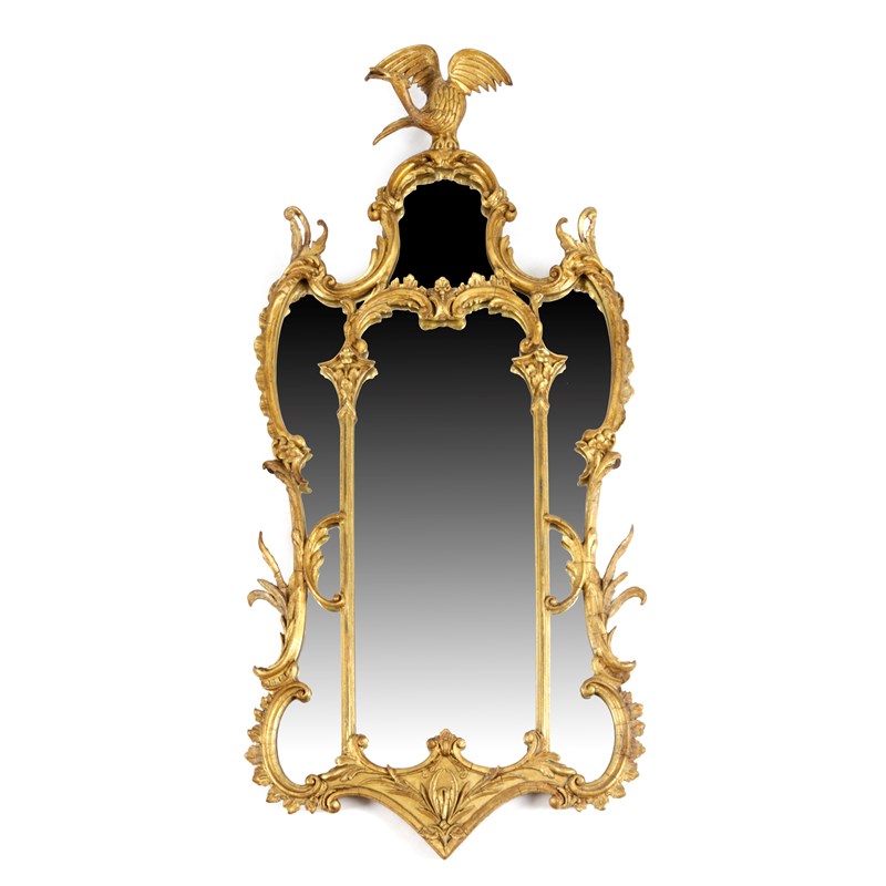 the shaped plates within a scroll, leaf and column frame with a ho-ho bird surmount