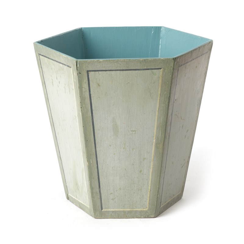 A PAINTED HEXAGONAL WASTEPAPER BIN