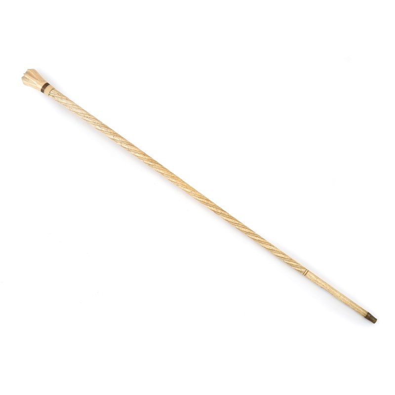 the shaft with narwhal tusk style twisting decoration beneath a marine ivory and baleen finial, with a brass ferrule