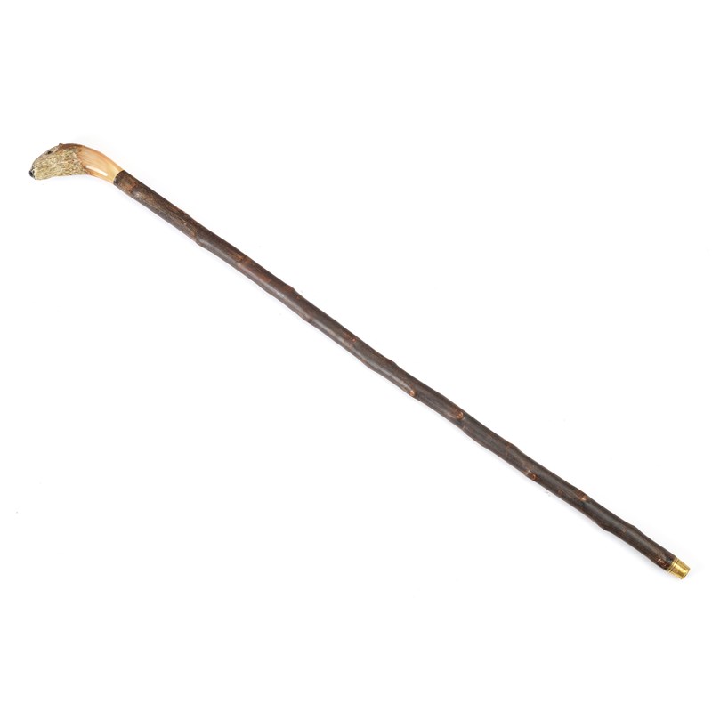 A HORN OTTER'S HEAD WALKING STICK