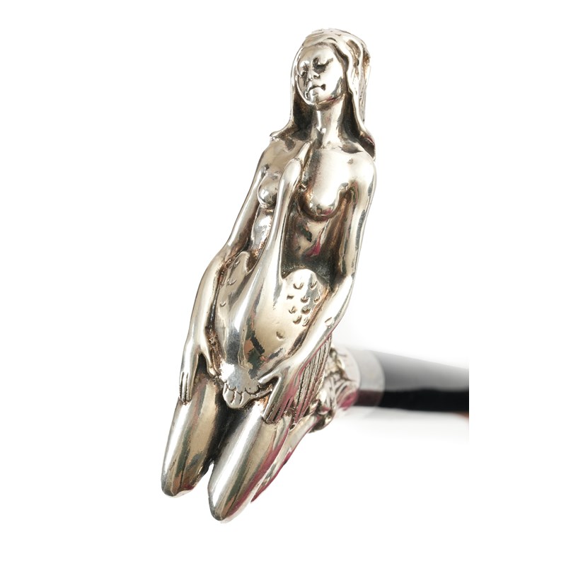 modelled as Leda and the swan, on an ebonised shaft with a brass ferrule, stamped '925'