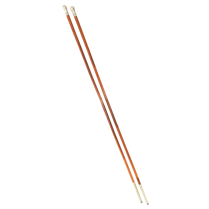 A PAIR OF VICTORIAN SILVER MOUNTED COACHING STAVES
