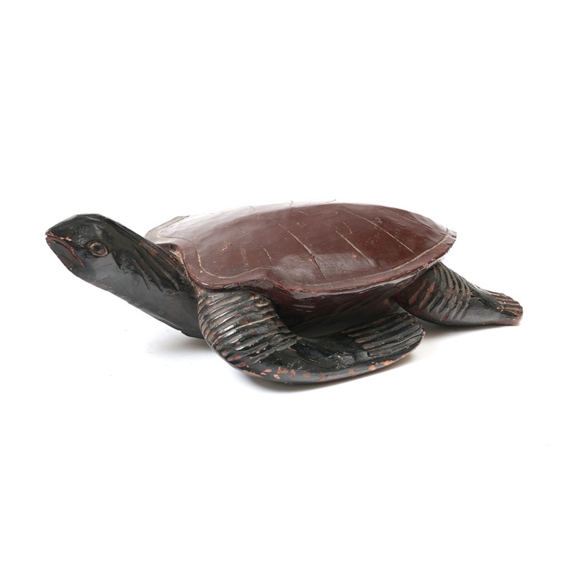A FOLK ART CARVED AND PAINTED WOOD MODEL OF A TURTLE