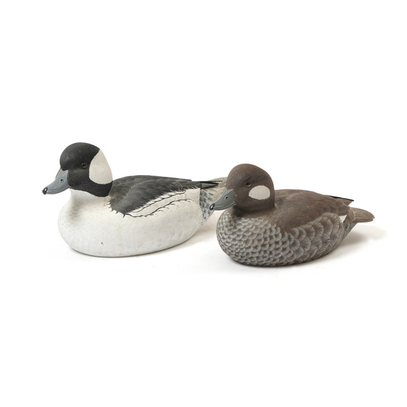 A PAIR OF CARVED AND PAINTED WOOD BUFFLEHEAD DUCKS