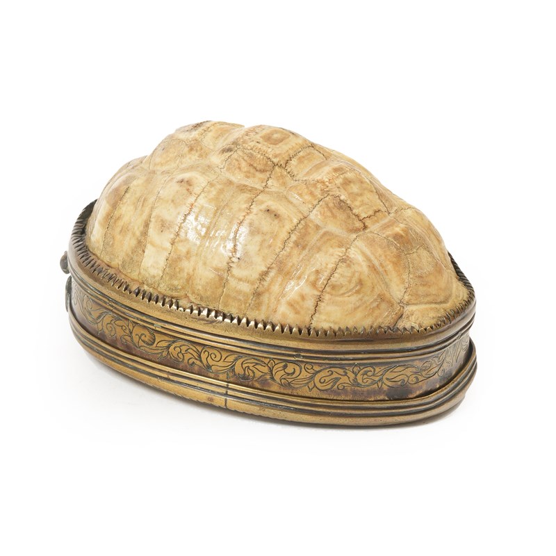 λ A DUTCH TORTOISE CARAPACE AND BRASS MOUNTED SNUFF BOX