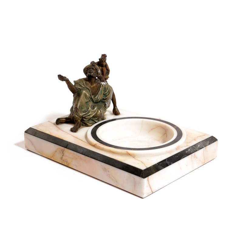 AN AUSTRIAN COLD PAINTED BRONZE ARAB AND MONKEY DESK STAND