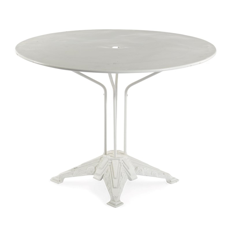 A FRENCH CAST IRON AND ZINC 'LOUIS VUITTON' BISTRO TABLE