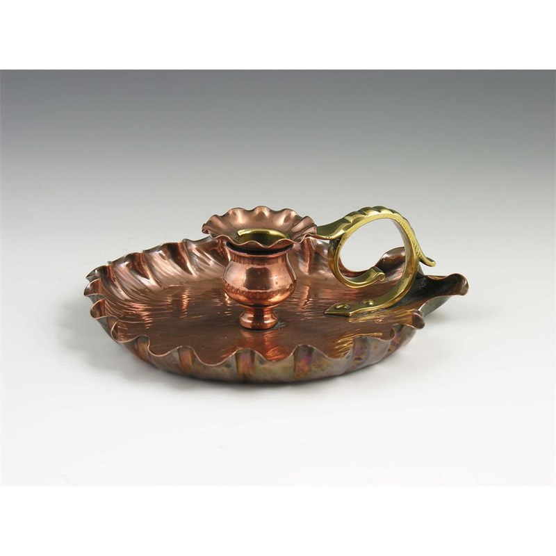 A late 19th century copper and brass chamberstick, 6.75in (17cm) l.
