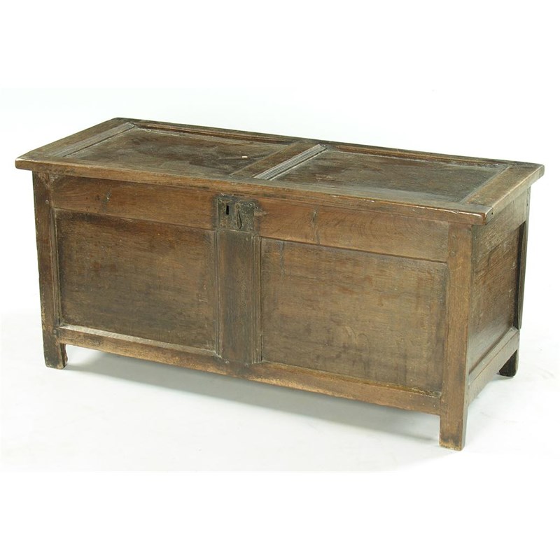 A late 17th century oak panelled chest