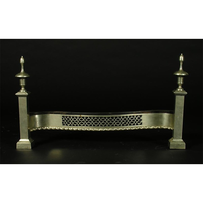 A serpentine fire front, the square columns with acorn and urn finials with a pierced frieze, 18in (45.6cm) h, 32.5in (82.5cm) w. Possibly Paktong.