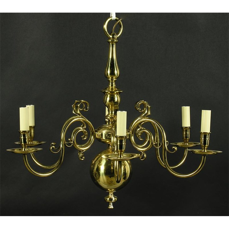 A pair of Dutch style brass six branch electroliers