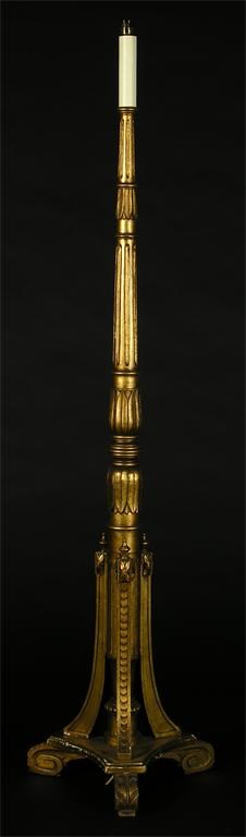 A carved giltwood standard lamp, early 20th century, 60.5in (153.6cm) h.
