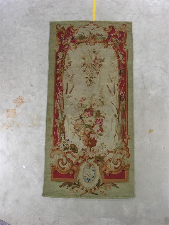 An Aubusson style entre fenetre, early 20th century, 115.5 x 54.5in (293.5 x 138.5cm). Small holes and repairs.