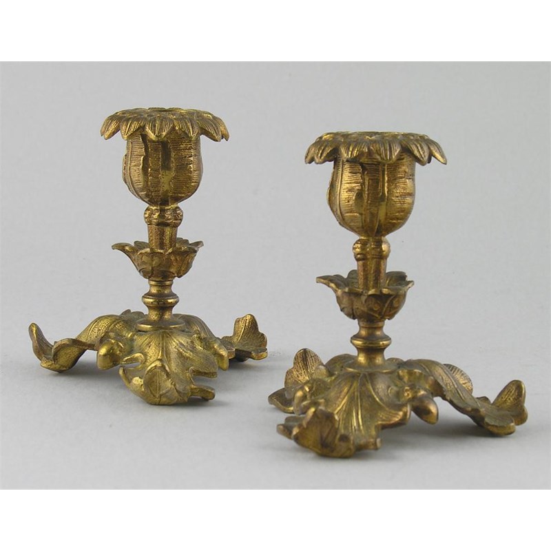 A pair of 19th century naturalistic dwarf candlesticks, with detachable sconces, 4.5in (11.4cm) h, 4in (10.2cm) w. (2)