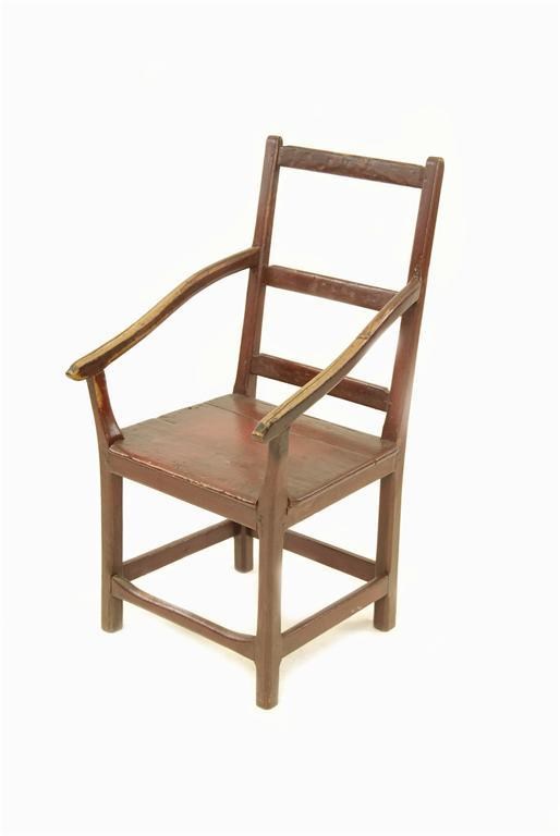 A 19th century Canadian red painted open armchair, having an open ladder back.