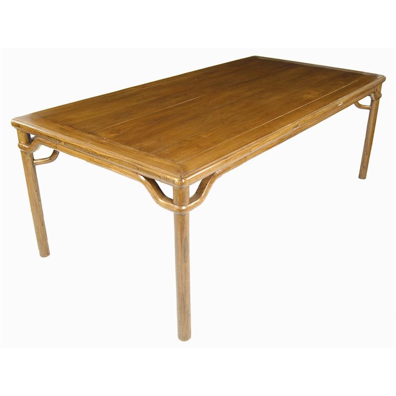 A Chinese elm dining table, 20th century, 31in (78.7cm) h, 86in (218.4cm) w, 43in (109.2cm) d.