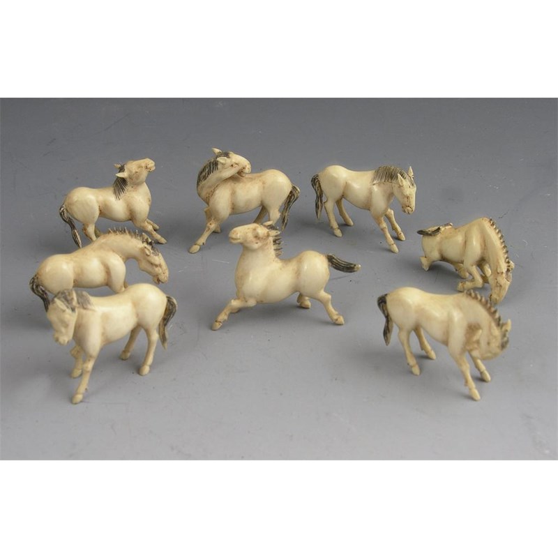 A Chinese carved ivory set of the eight horses of Wu Mang, the tallest 1.5in (3.8cm) h. One leg broken and present. (8)