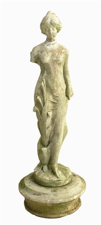 A late 19th century carved marble figure of a young lady, on a tuned base, 37in (94cm) h. One arm missing, restoration to neck.